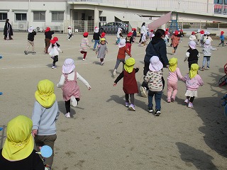 近くの川が氾濫して、幼稚園が水で いっぱいになった時、どうしたらいい か、話を聞きました。