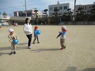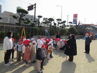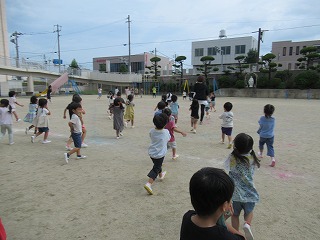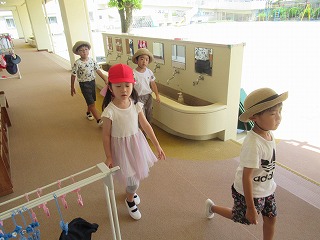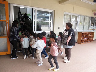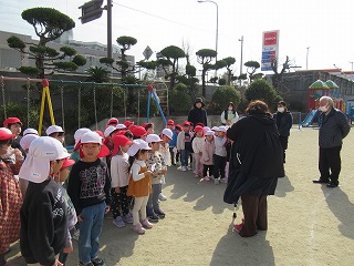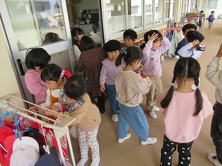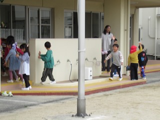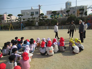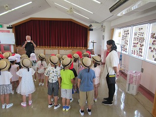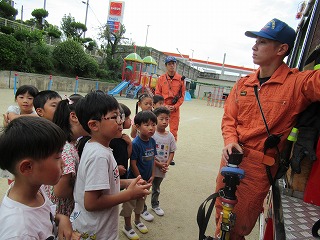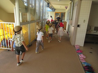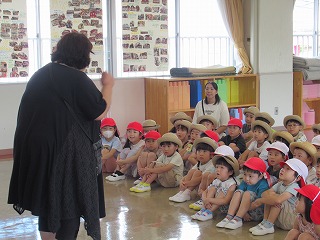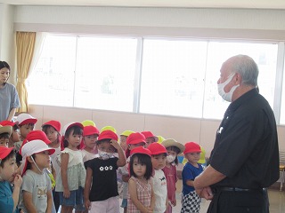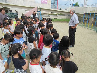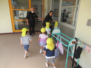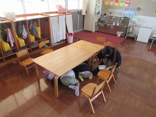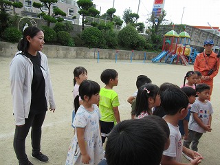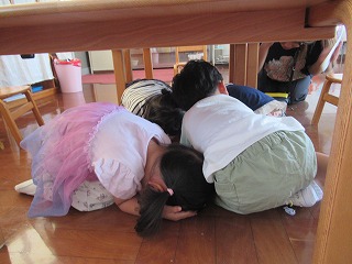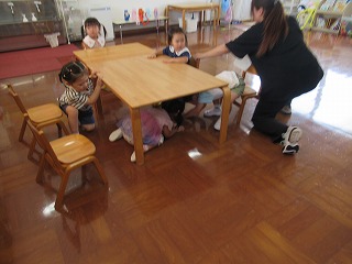 近くの川が氾濫して、幼稚園が水で いっぱいになった時、どうしたらいい か、話を聞きました。