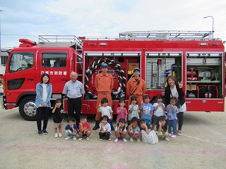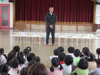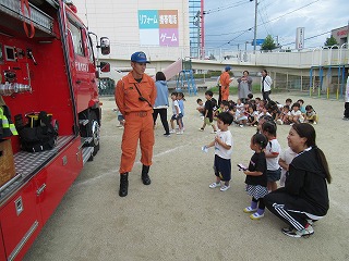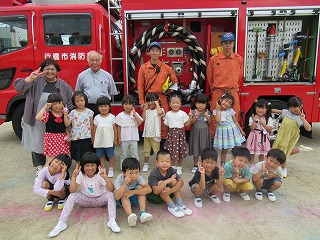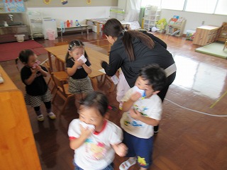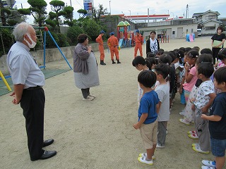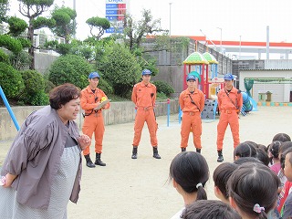 近くの川が氾濫して、幼稚園が水で いっぱいになった時、どうしたらいい か、話を聞きました。
