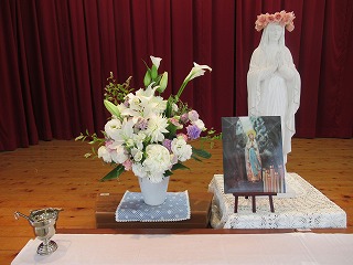 神父様から祝福してもらいました。 聖水を注いでいただきました。